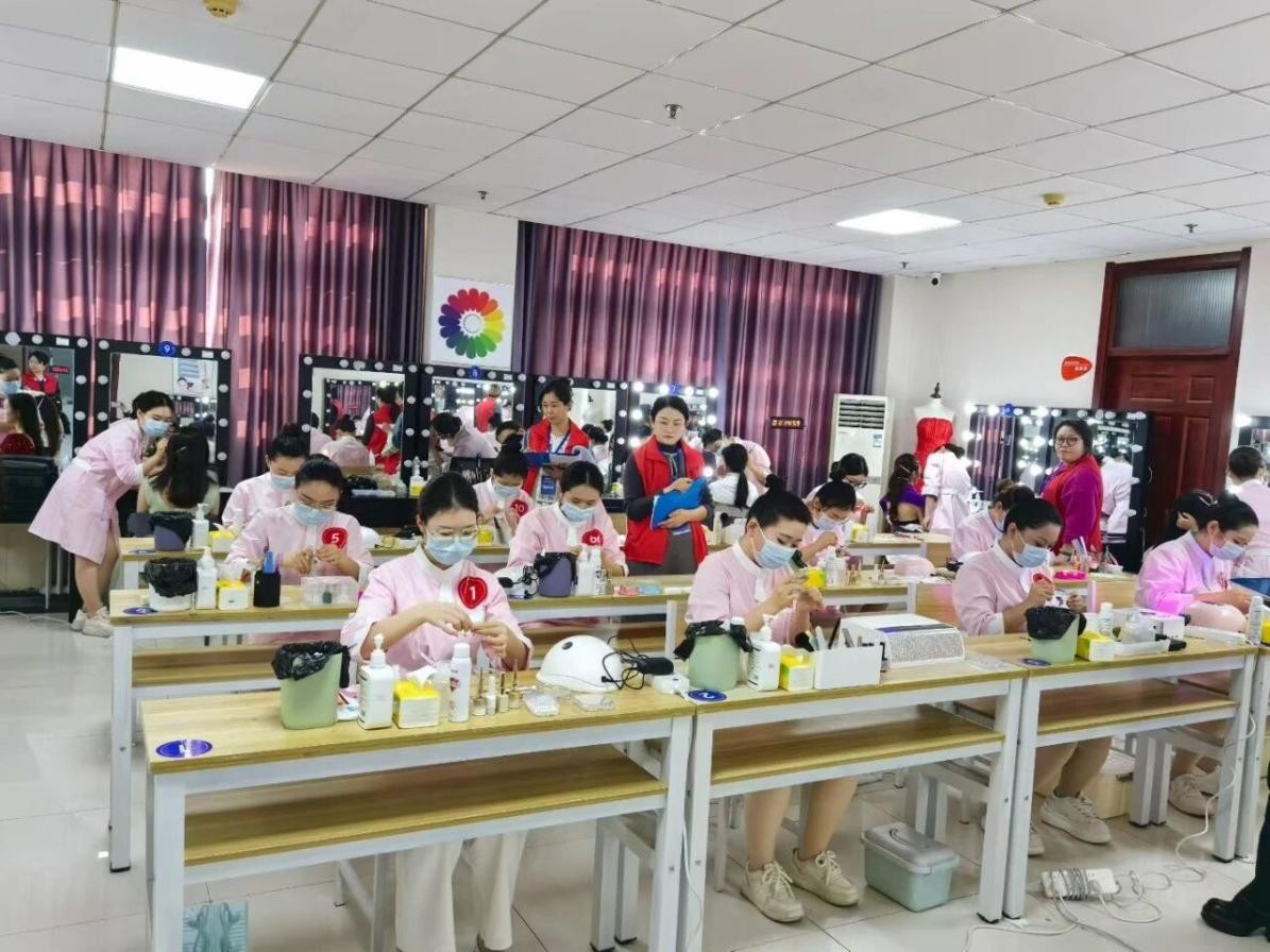 在美容护肤技术赛项中,选手需要对不同肤质状况进行精准分析与诊断,并据此进行面部护理实操演示;化妆造型技术赛项则要求选手依据给定的主题,充分发挥创意与审美,完成从妆容设计到整体造型搭配的一系列任务,展现出对时尚潮流与美学理念的深刻理解和娴熟运用;美甲技术比拼时选手们在方寸之间展现了惊人的耐心和复杂的工艺,作品完成度整体较高。