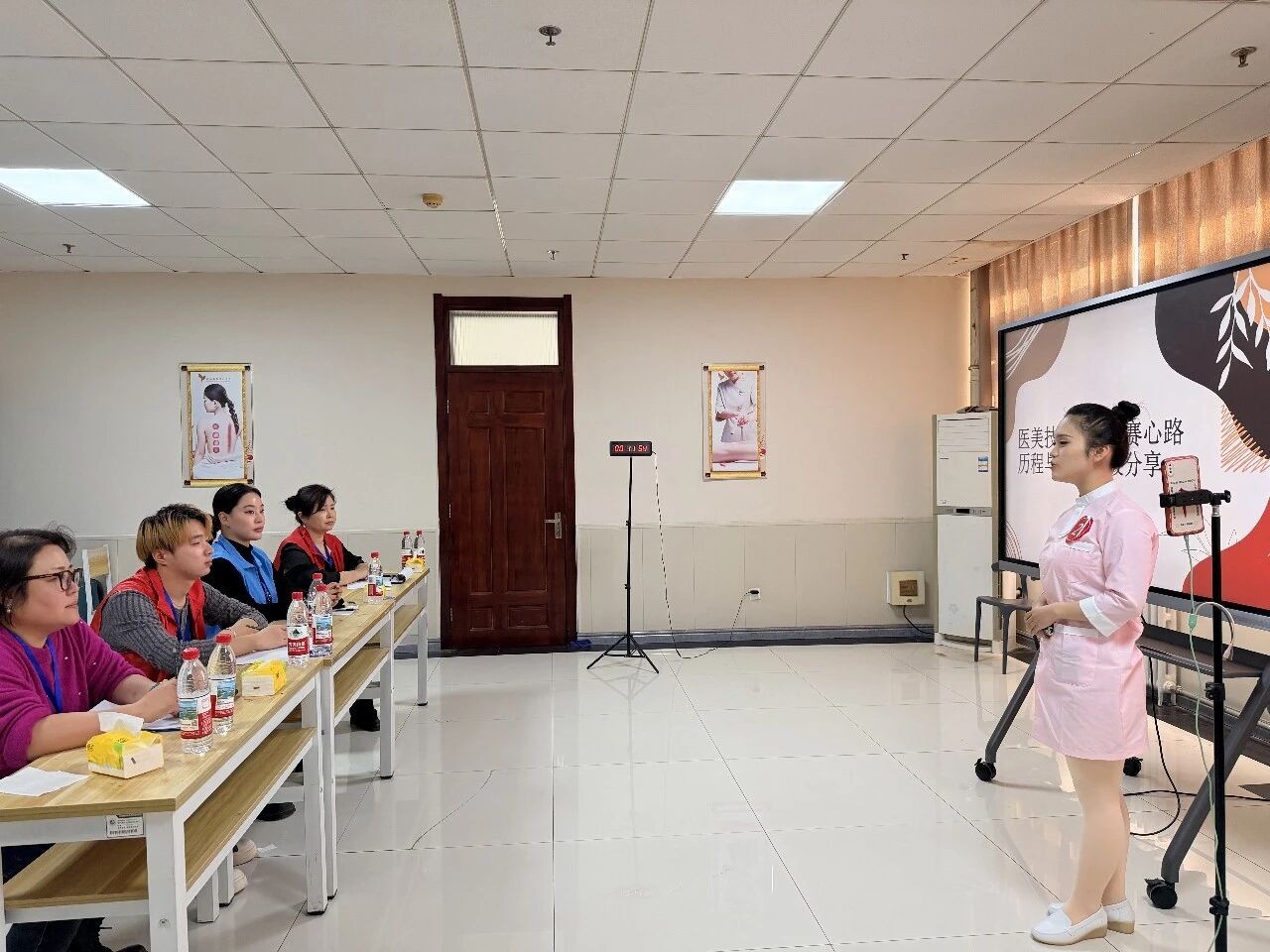 河北省卫生职业教育集团理事长、我校校长王衍,我校副校长王国明,中国国际科技促进会医药卫生教学与研究工作委员会执行主任王文海等嘉宾领导,以及裁判代表以及各参赛学校领队、指导教师、参赛选手等共100余人参加了大赛开幕式。