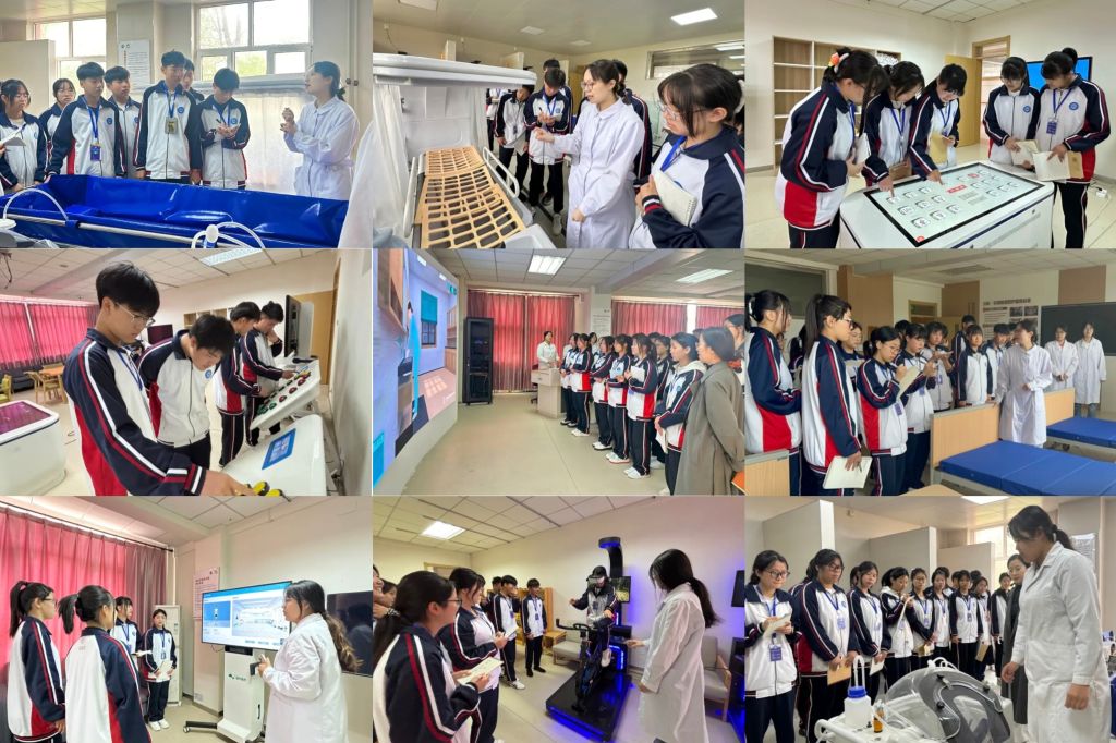 党建联建学习研讨会结束后,来访师生在我系教师及学生志愿者的引导下,依次走进康养护理、健康评估、智慧养老等专业实训室,开展沉浸式参观学习。我系专业教师对各类实训设备的功能定位、操作规范及教学应用场景进行了深入细致的讲解。参观过程中,双方师生积极互动,围绕课程建设、技能培养、实训组织等话题展开热烈讨论,现场研学氛围浓厚。